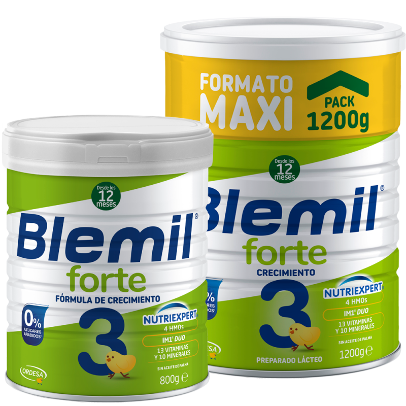 Blemil 3 forte fórmula de crecimiento es un preparado lácteo infantil especialmente adaptado a la capacidad digestiva y necesidades nutritivas del niño a partir del año de edad, como paso previo a la leche de vaca.