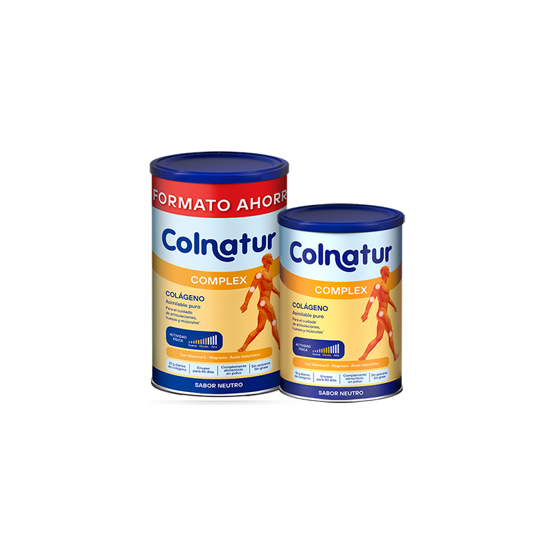 Colnatur Complex es un complemento alimenticio a base de proteína de colágeno hidrolizada (natural, muy asimilable y pura) enriquecida con magnesio, vitamina C y ácido hialurónico.