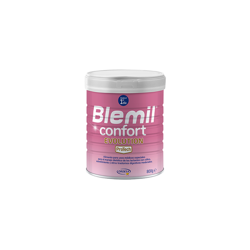 Blemil Confort Evolution es una fórmula infantil de elevada tolerancia y digestibilidad indicada para el manejo nutricional de las molestias digestivas leves, como son el cólico, estreñimiento y otros trastornos digestivos moderados.